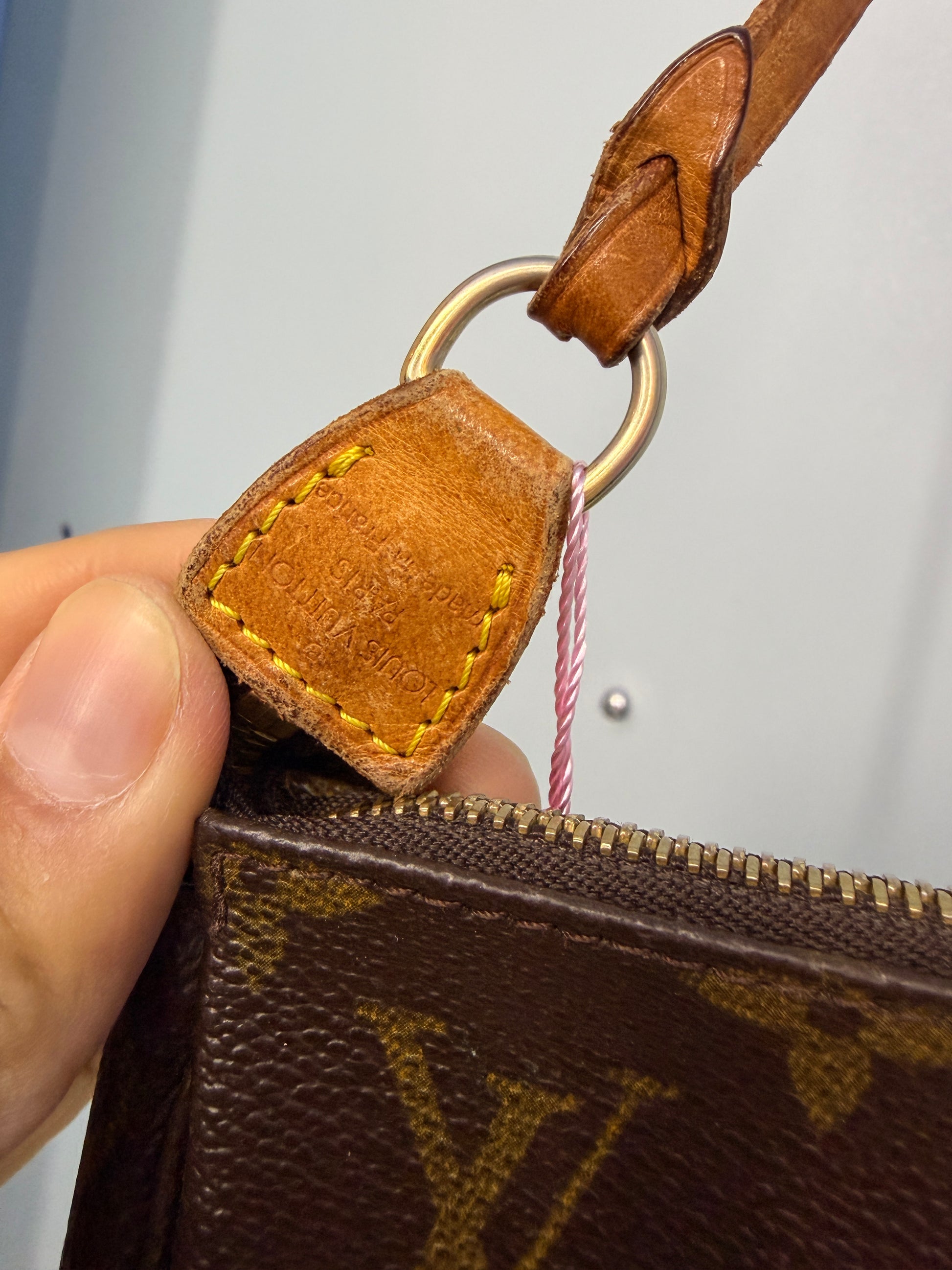 A classic LV cutie with a little extra character. This monogram pochette still has that iconic look, but please note the zipper pull is broken (the zipper itself is still functional) and there’s a small pen mark as shown in the photos. Perfect for someone who doesn’t mind minor flaws or wants an easy restoration piece. Still super wearable and timeless.